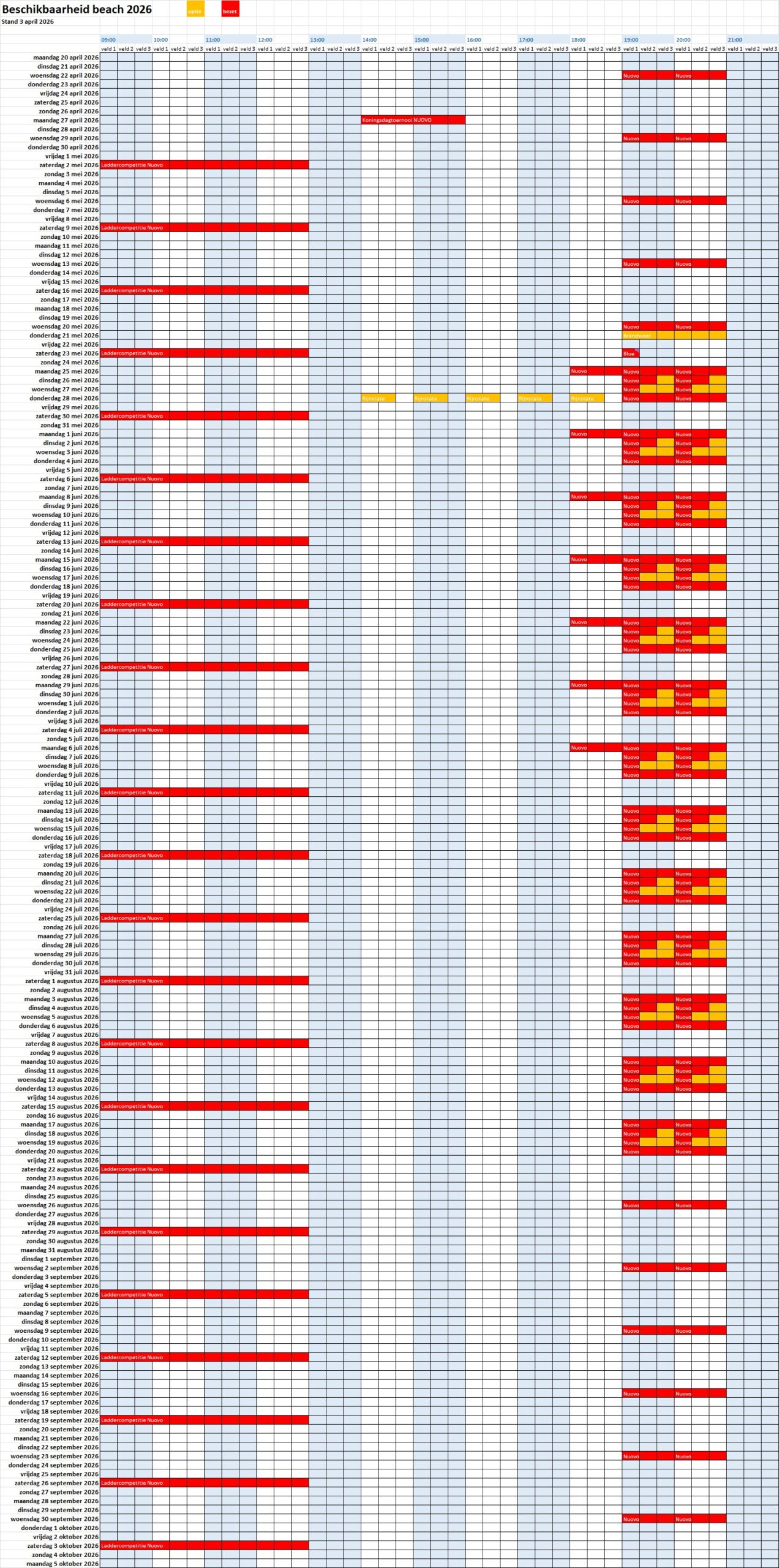 De verhuur van de beachvelden gebeurt door Volleybalvereniging NUOVO. Voor meer info of vragen kunt u contact opnemen via beachverhuur.